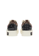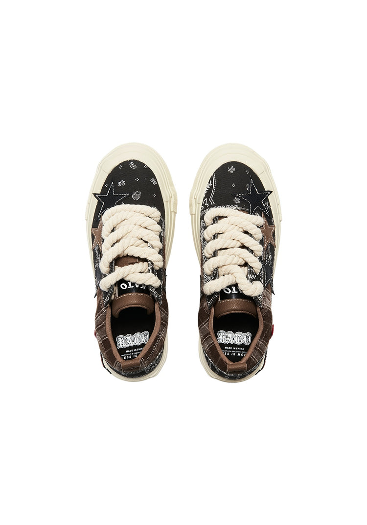 Inspired by the classic trend element paisley, the classic paisley pattern is combined with retro plaid while taking into account the collision of materials. The side of the shoe is made of brushed plaid cloth, and the stars are made of lychee leather to ensure the quality of the shoe. All the fabrics on the shoes are hemmed, making them look more three-dimensional.