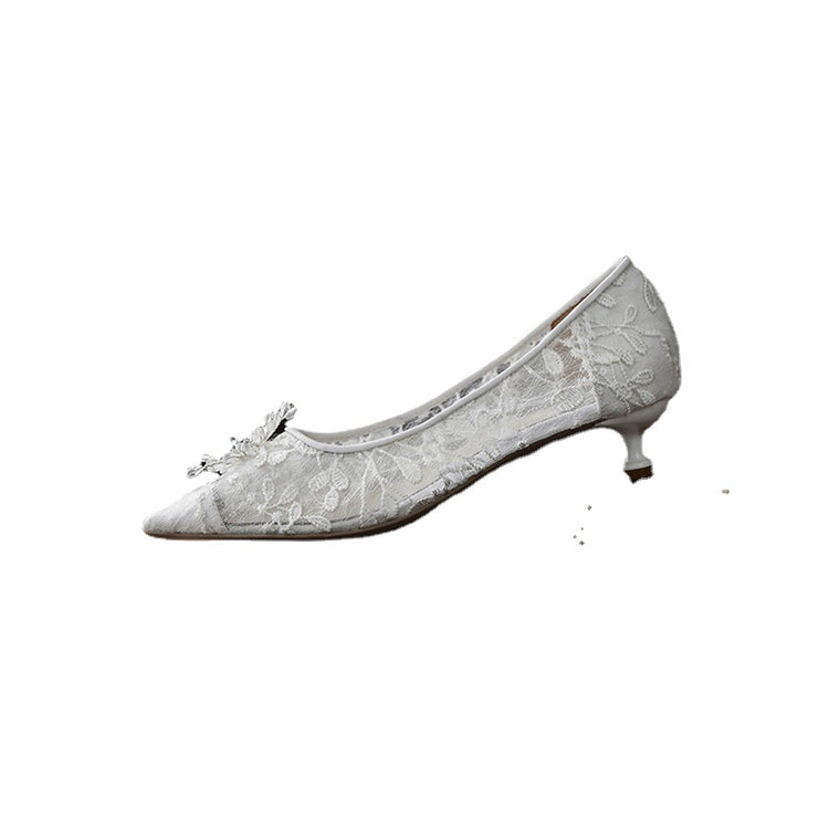 Wedding Shoes Flat White Wedding Dress Crystal Low Heel Shoes