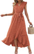 Dress Ruffle Sleeve S Wave Bohemia Elegant Maxi Dress Red