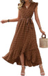 Dress Ruffle Sleeve S Wave Bohemia Elegant Maxi Dress Khaki
