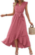 Dress Ruffle Sleeve S Wave Bohemia Elegant Maxi Dress Red