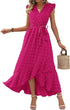 Dress Ruffle Sleeve S Wave Bohemia Elegant Maxi Dress Red