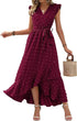 Dress Ruffle Sleeve S Wave Bohemia Elegant Maxi Dress Red