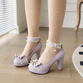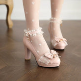 Girl Student Leather Shoes High Heels Thick Heel Single Shoes Bow Dress Female