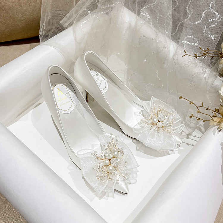 Sweet Bow Bridal Shoes White Wedding Dress